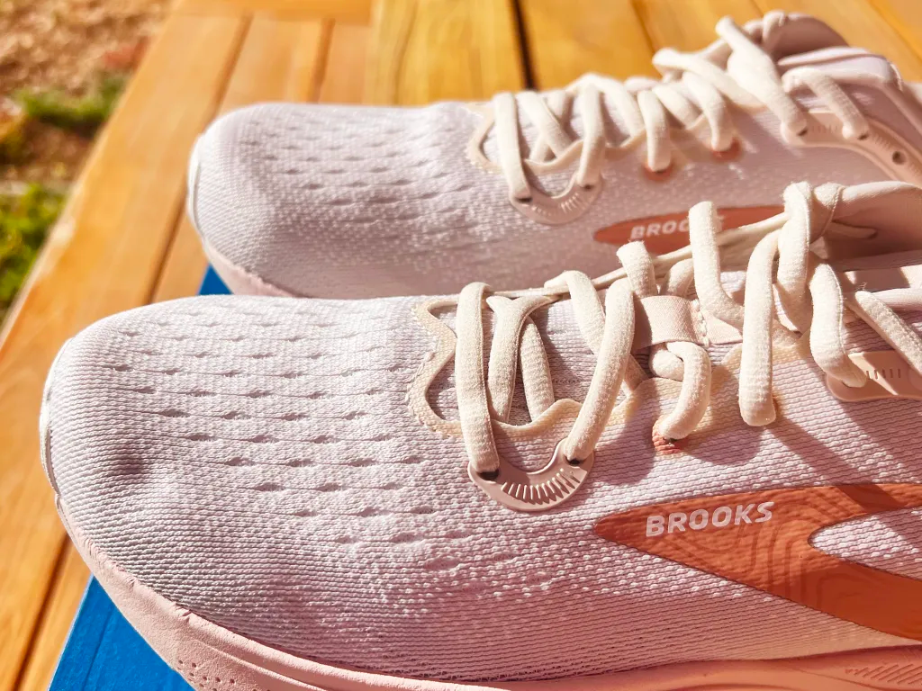 La matière en mesh est assez confortable et moelleuse sur toute la longueur de la chaussure. J’ai porté ces chaussures sans chaussettes et je n’ai eu aucun problème. Malgré la légère conicité, je considère que c’est l’une des meilleures tiges Brooks que j’ai connues.