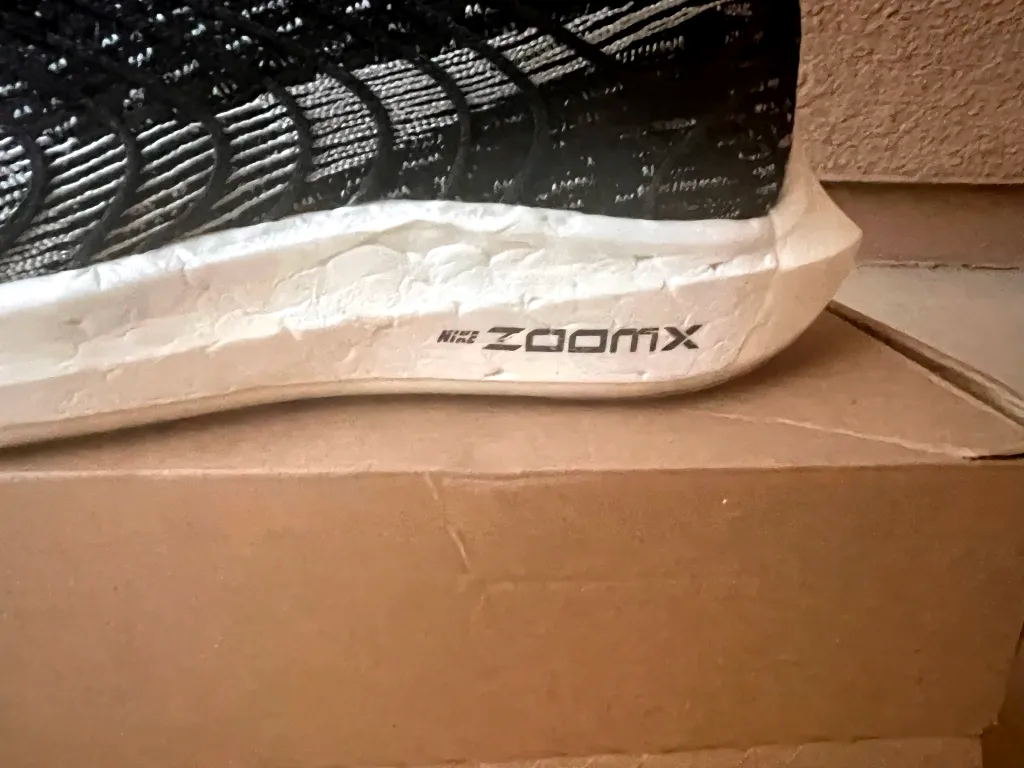 Le visuel de la technologie Turbo Next Nature est également intéressant. La semelle intermédiaire comprimée semble déjà avoir des centaines de kilomètres au compteur. Bien que la chaussure soit neuve, elle a l’air presque sale et semble avoir été portée auparavant. Je sais que ce n’est pas le cas et que c’est juste le design, mais c’est quand même bizarre. Si vous vous souvenez de la Nike 4% originale, elle avait aussi une semelle intermédiaire similaire déjà comprimée. Cela me rend nerveux parce que la 4% n’a été efficace que pendant 100 km.