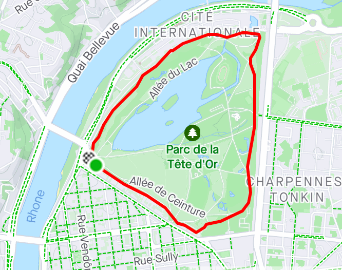 alt="Segment Strava Tour du parc de la Feyssine" class="wp-image-23150">Situé au nord de Lyon, le long des berges du Rhône, le parc de la Feyssine séduit les coureurs locaux. Avec une longueur d’environ 4 km, similaire à celle de la Tête d’Or, les sentiers qui s’y trouvent sont relativement plats. Cependant, si tu cherches un lieu en ville qui offre l’ambiance d’une forêt à deux pas de ton lieu de travail, le parc de la Feyssine devrait devenir ton terrain de jeu préféré. On s’y sent en totale communion avec la nature, presque comme si l’on courait au cœur d’une forêt. De plus, selon ton niveau de forme du moment et si tu souhaites ajouter quelques kilomètres, tu as la possibilité depuis cet itinéraire de rejoindre également le parc de la Tête d’Or.