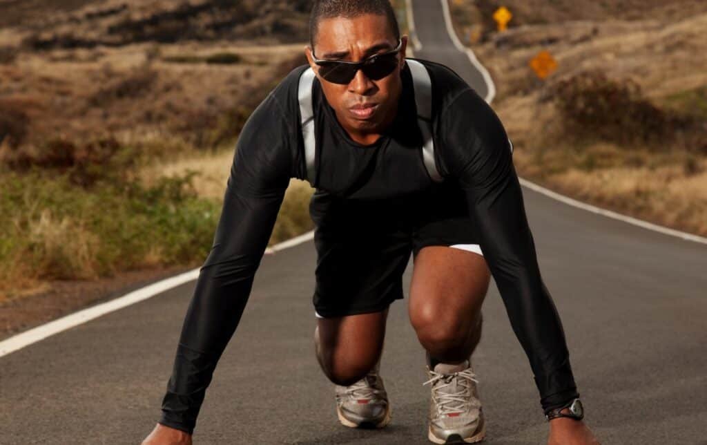 alt="Un homme en position de départ de course" class="wp-image-8480" style="width:768px;height:483px">Vous pourriez souffrir d’un gonflement après une séance d’entraînement intense