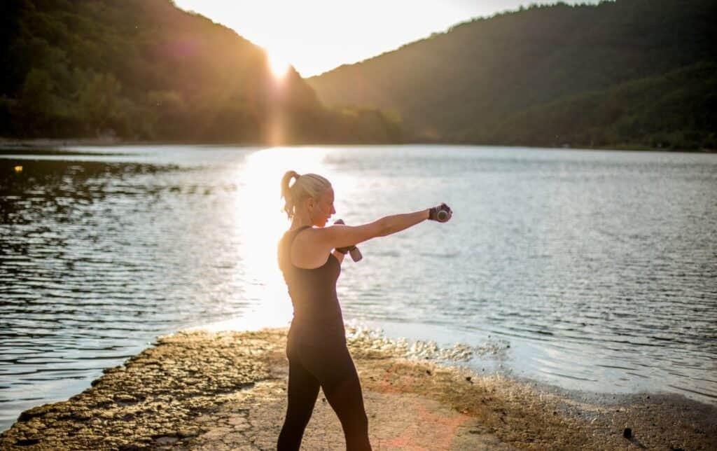alt="Une femme fait du kickboxing à côté d'un lac" class="wp-image-8481" style="width:768px;height:483px">Le syndrome d’ovaires poly kystiques pourrait être à l’origine de votre prise de poids – pas la course à pied